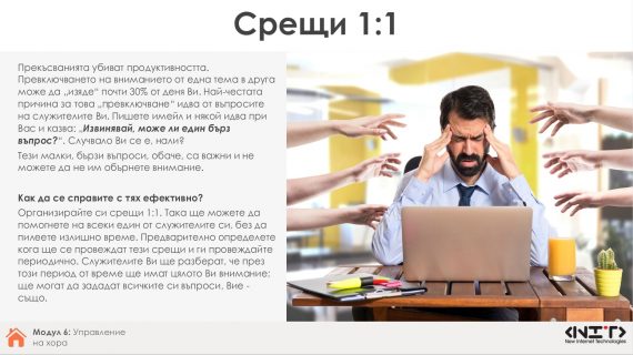 We will be happy to answer your questions. You can contact us by phone.: +359 2 850 53 64 or e-mail: office@nitbg.com.